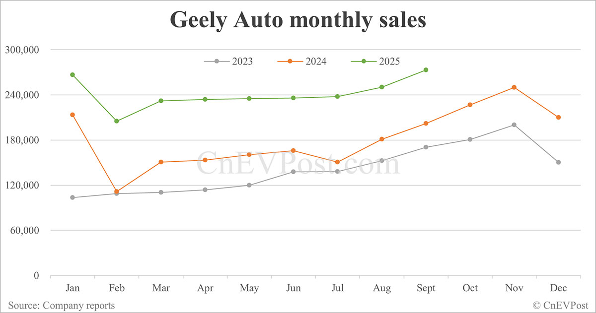 受吉利银河强劲表现推动,吉利9月份销量创历史新高